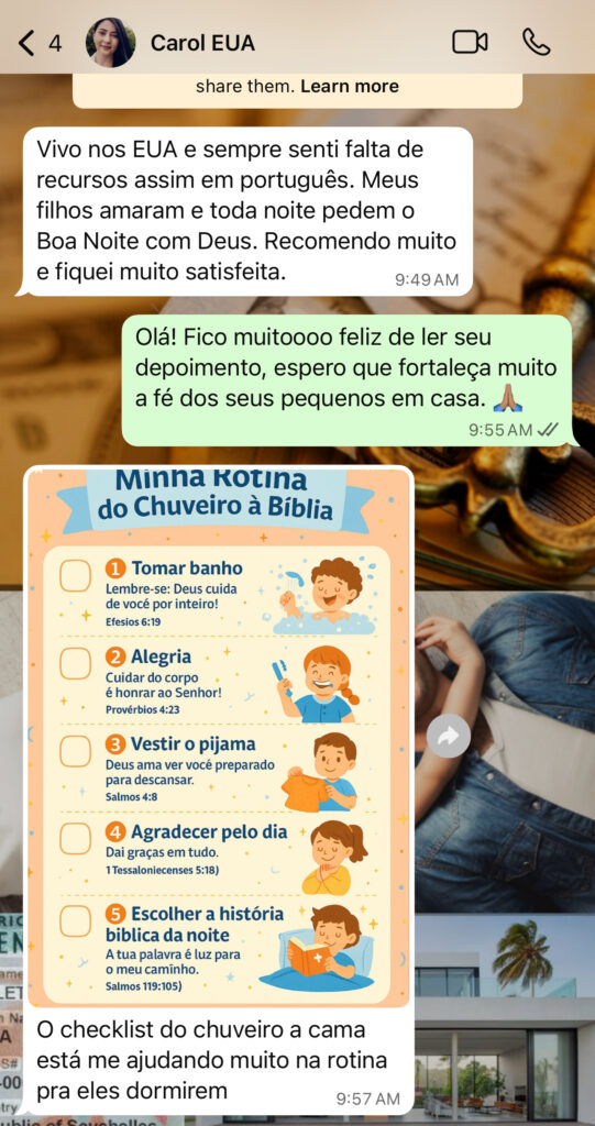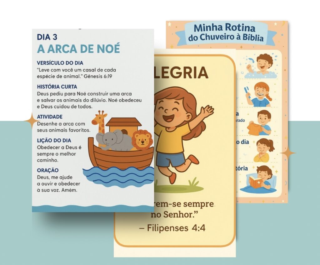 Você quer ensinar a Bíblia ao seu filho, mas no fim do dia já está exausta e tudo o que você queria era um momento simples, leve e cheio de significado antes do “boa noite”? A vontade está aí, mas entre tantas tarefas e o cansaço, contar histórias parece mais um peso do que um prazer? A verdade é que não precisa ser difícil e nem demorado para criar memórias com fé e propósito. Com uma rotina de apenas 10 minutos, você transforma o fim do dia em um momento de conexão profunda, mesmo que não saiba por onde começar.
